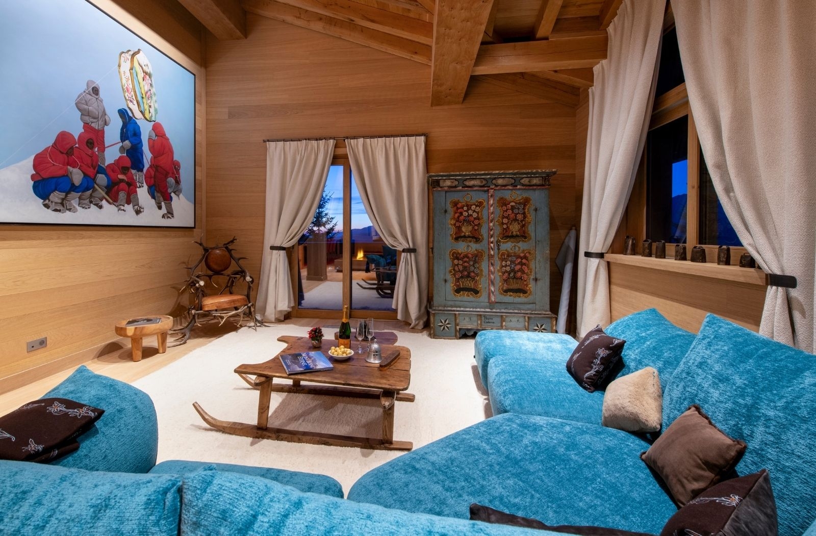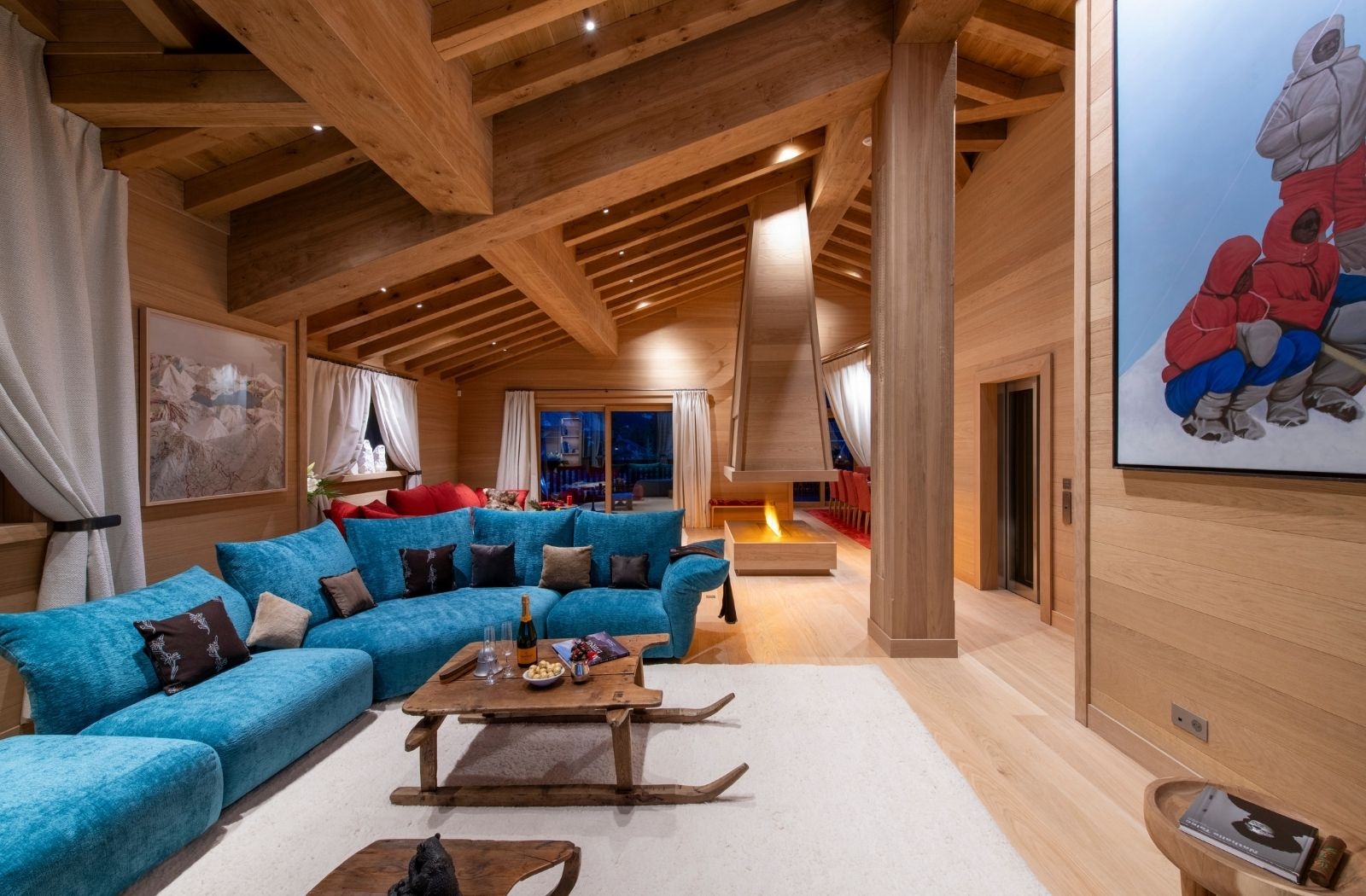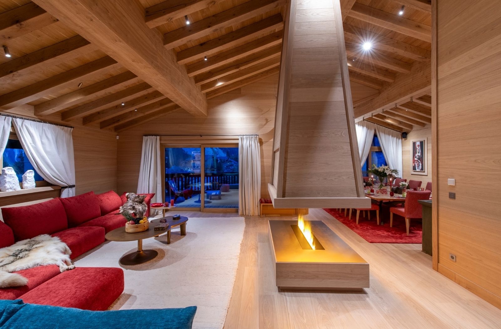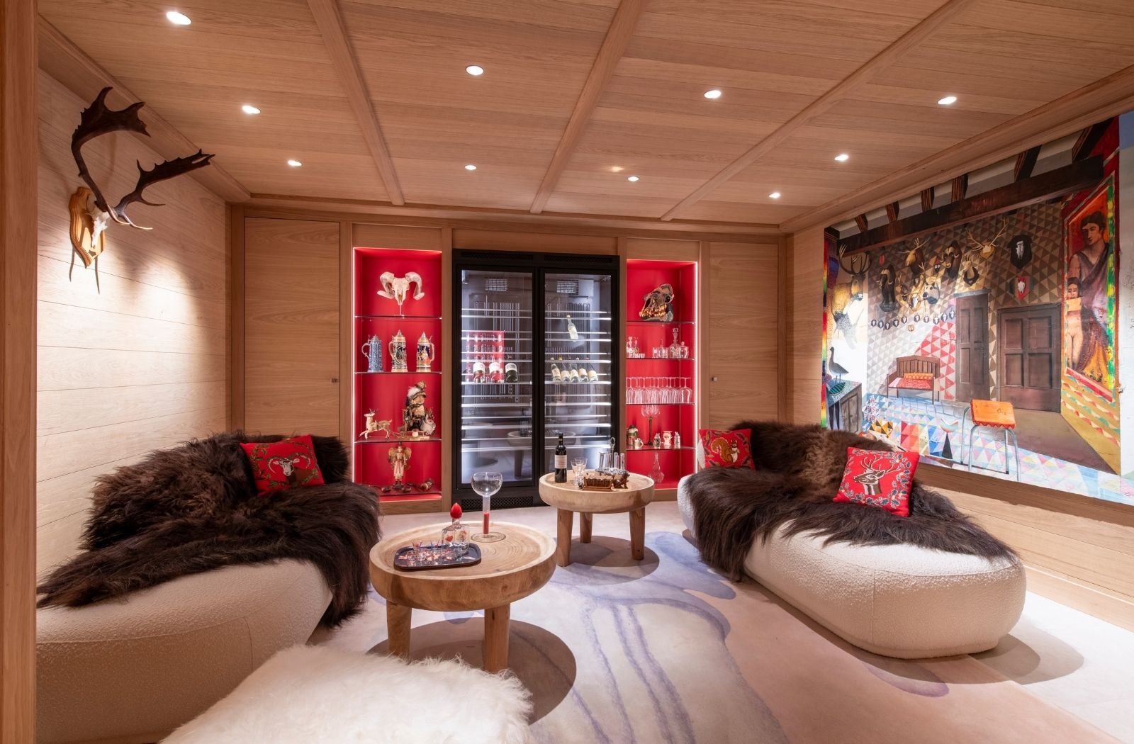 Blending contemporary alpine style with sophistication, the chalet features expansive living areas filled with natural light, high ceilings, and terraces boasting panoramic views of the surrounding mountains. After a day on the slopes, unwind in the chalet’s inviting spaces: a TV lounge, billiards room, elegant wine cellar, and warm, convivial lounges.