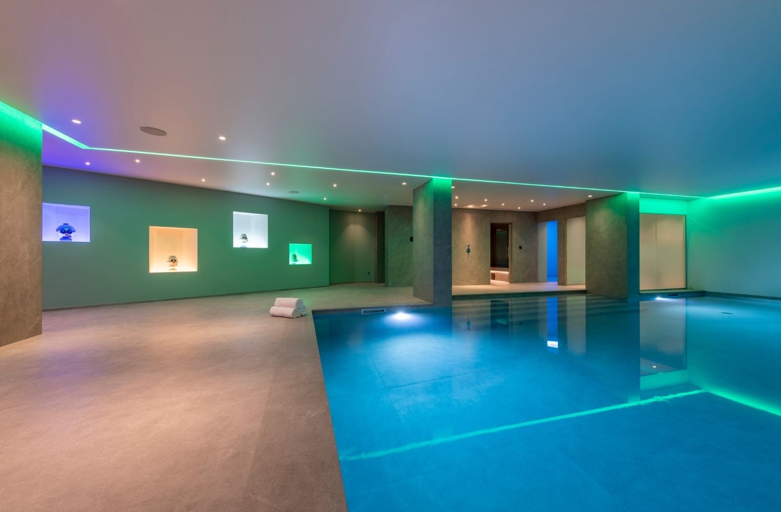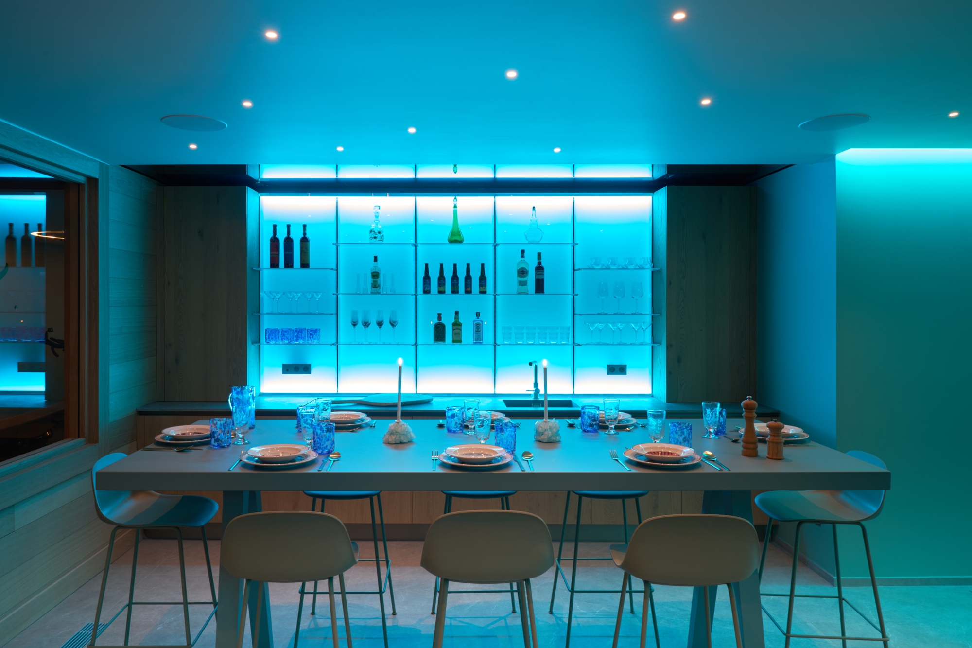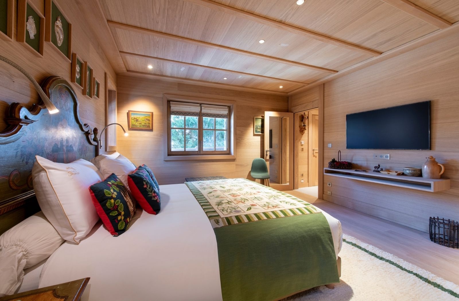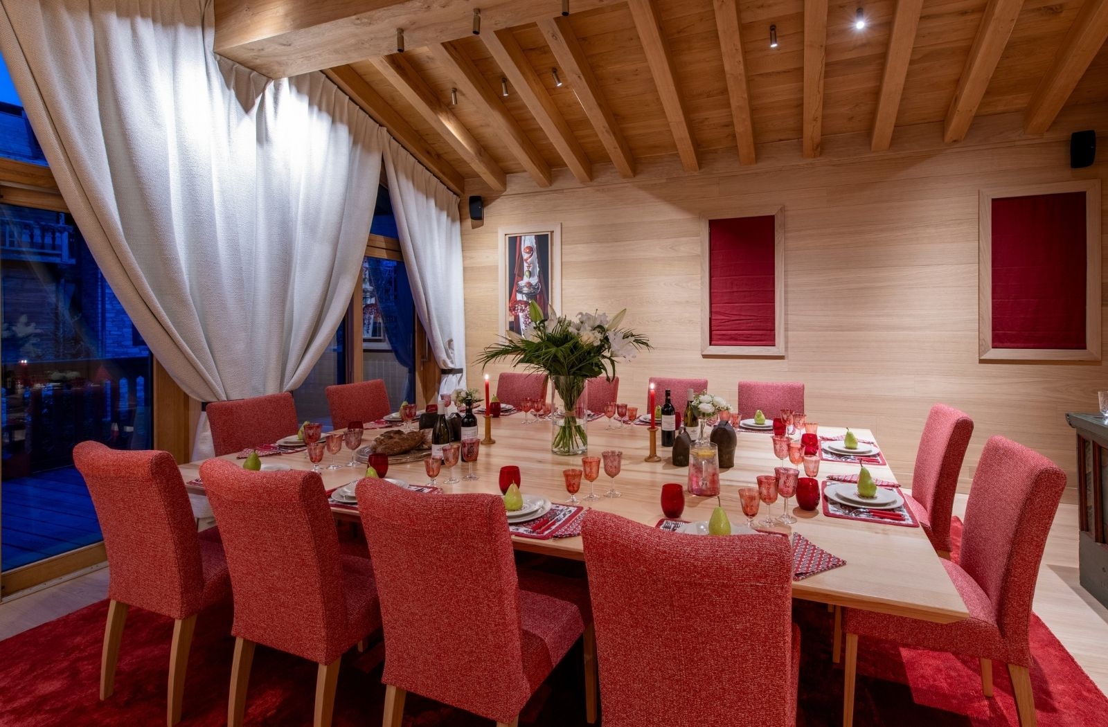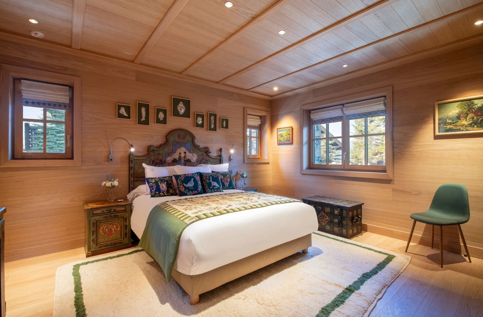 Blending contemporary alpine style with sophistication, the chalet features expansive living areas filled with natural light, high ceilings, and terraces boasting panoramic views of the surrounding mountains. After a day on the slopes, unwind in the chalet’s inviting spaces: a TV lounge, billiards room, elegant wine cellar, and warm, convivial lounges.